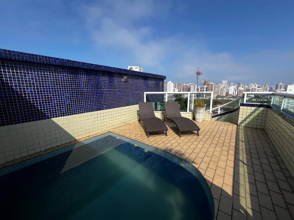 lindíssima cobertura com 3 andares. 1 Andar 1 sala com 2 ambientes,com sacada envidraçada. 2 dormitorios,sendo 1 suite com sacada, 1 wc. 1 cozinha com area de serviço. 2 andar 1 sala com 2 ambientes sacada envidraçada com churrasqueira, 1 lavabo 1 Dormitorio com suíte, ultimo piso1 piscina. a 400 metros Praia. ótima localização,comércio nas proximidades.