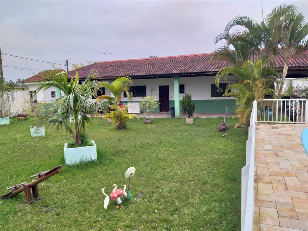 Linda chacara em mangaguá, próximo de todos comércios, 3 dormitórios, piscina, churrasqueira, área de laser para criança, aceita permuta por casa na Guilermina, área total 1200m²!